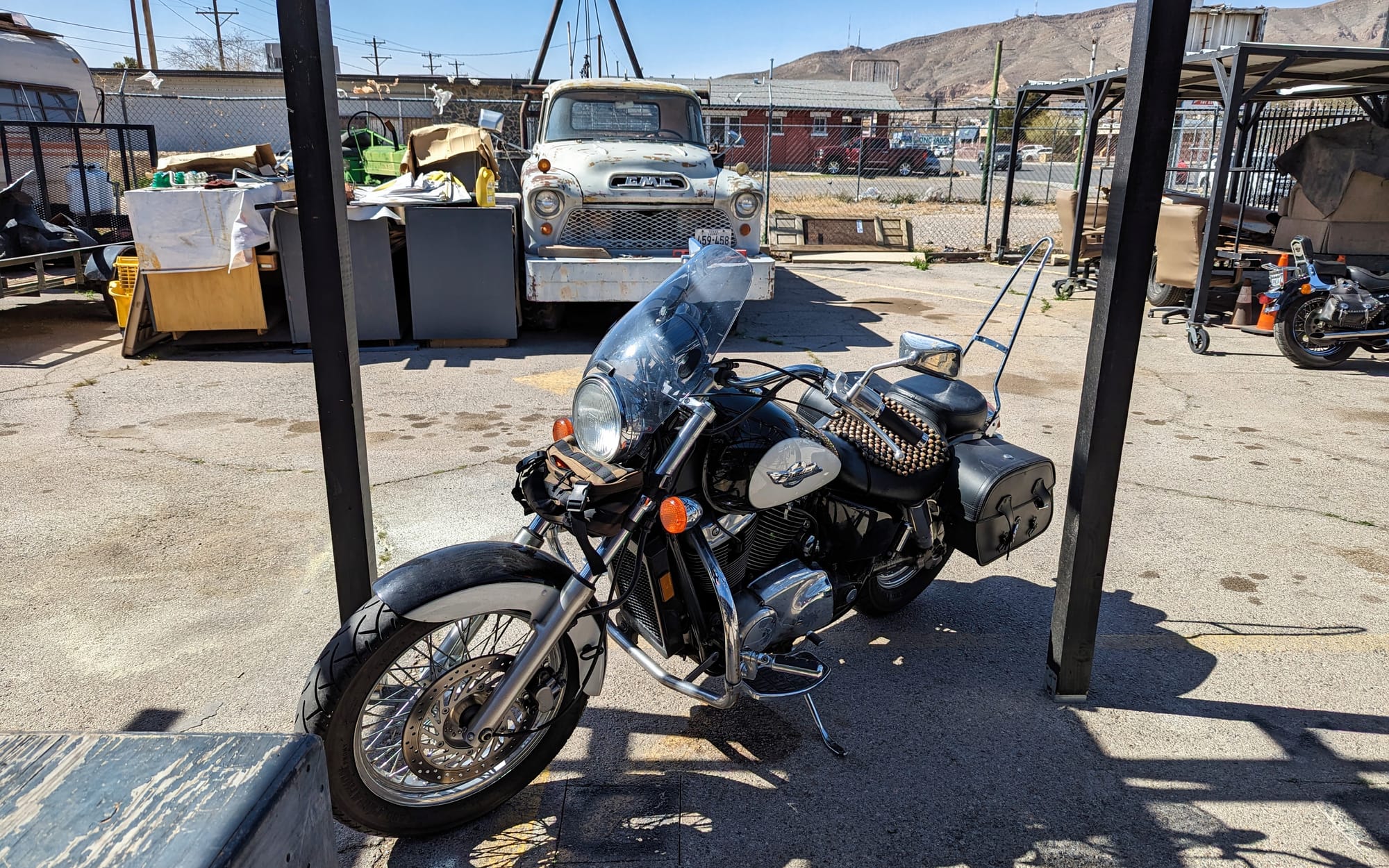 I've started to get used to the rhythms - not just of Danny's moods, but of this city, of the shop, of getting up and working on the Shadow and immediately smelling like gasoline, the tips of my fingers cracking and peeling from solvents and the back of my neck burning in the high desert sun.